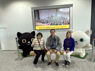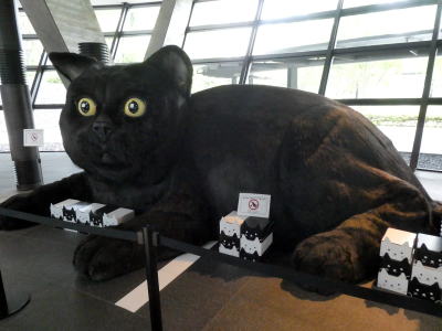 見学後にロビーには巨大な黒ネコのぬいぐるみと宅急便の最初のトラックなどあり、記念撮影してきました。
