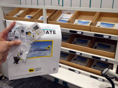 昼食後、穴守稲荷にあるヤマト運輸羽田クロノゲートへ移動、ヤマト運輸の歴史などを見た後、目玉の荷物仕分けレーンの見学です。
