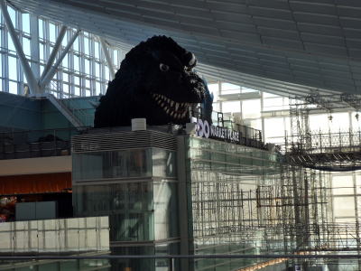12月からゴジラとのコラボがあるようで、その準備中のゴジラの頭が見られます。 |