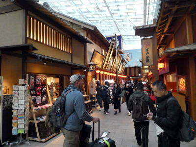 最初に羽田空港第3ターミナル(旧国際線ターミナル)に行きました。ここは、江戸横丁というコンセプトで江戸の街並みにお土産屋さんやレストランが並んでいます。外人さんには最後の日本の思い出のおみやげなど購入出来ます。