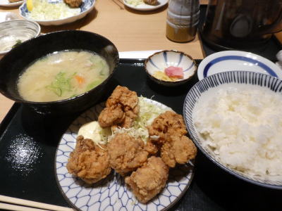 私はトンカラ(豚汁と唐揚げ)定食(¥1200) |