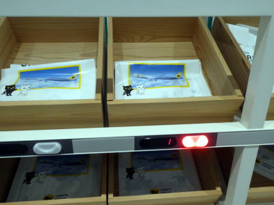 商品を取り出してボタンを押すと、緑ランプがついて確認した事が判ります。 |