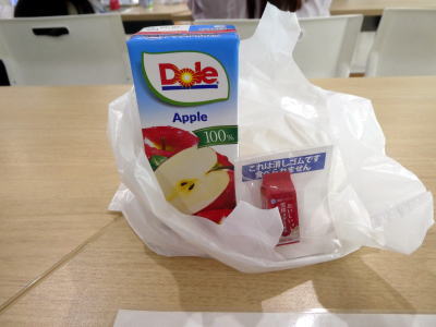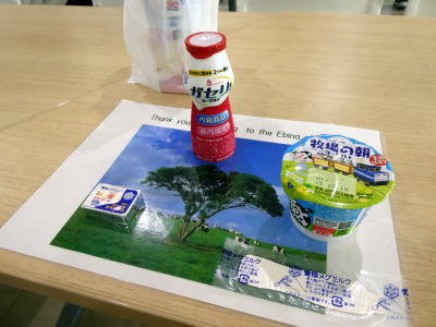 おみやげはドールのジュースと牛乳パックの消しゴムを貰えました。