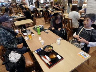 タクシーを呼んで海老名駅へ戻り、駅前のららぽーと海老名のフードコートで昼食。みなさんお好きなメニューを頼んでいました。 |